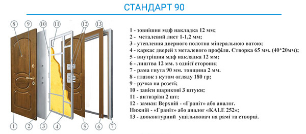 Стандартні розміри 970х2050 мм , 1170х2050 мм , а також нестандартні розміри під замовлення .